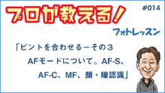 #014「ピントを合わせる-その3 AFモードについて。AF-S、AF-C、MF、顔・瞳認識」